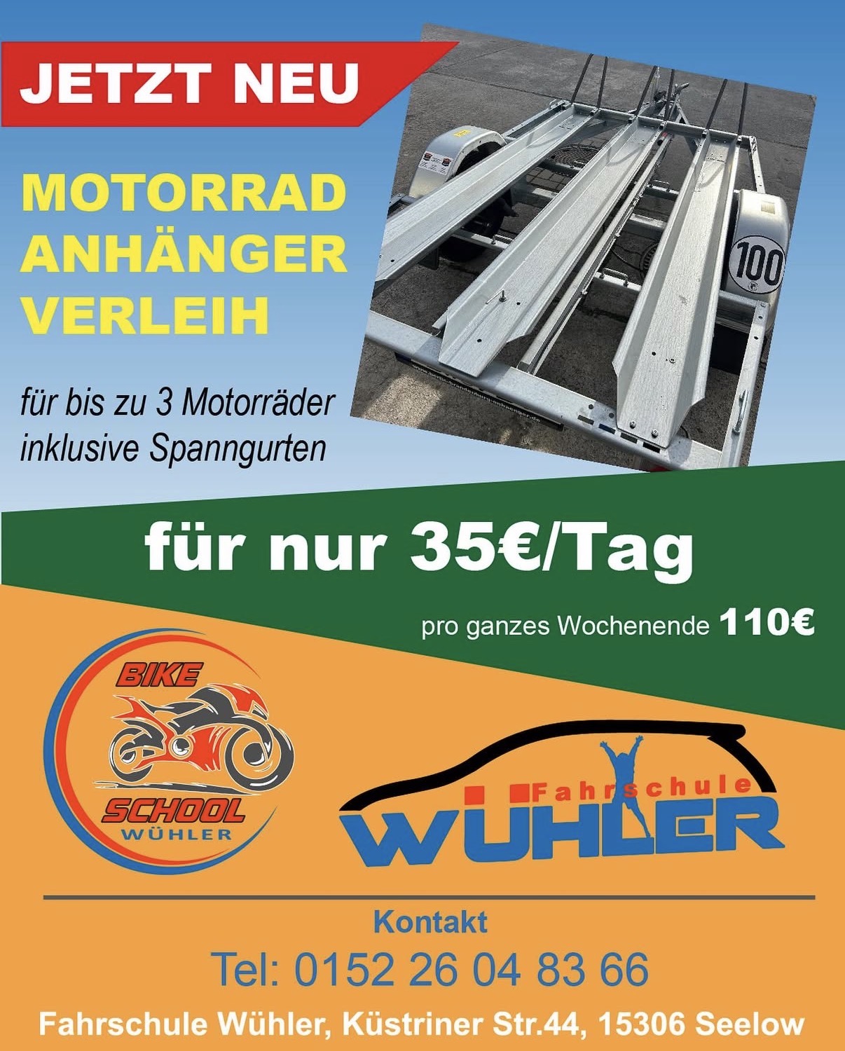 Anhänger für bis zu 3 Motorräder. Zulässige Gesamtmasse 1000kg